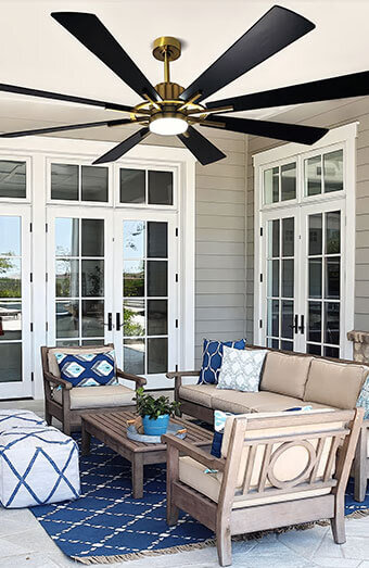 Installation of weather-rated ceiling fans for alfresco areas, patios, or balconies, designed to withstand coastal or high-moisture environments.